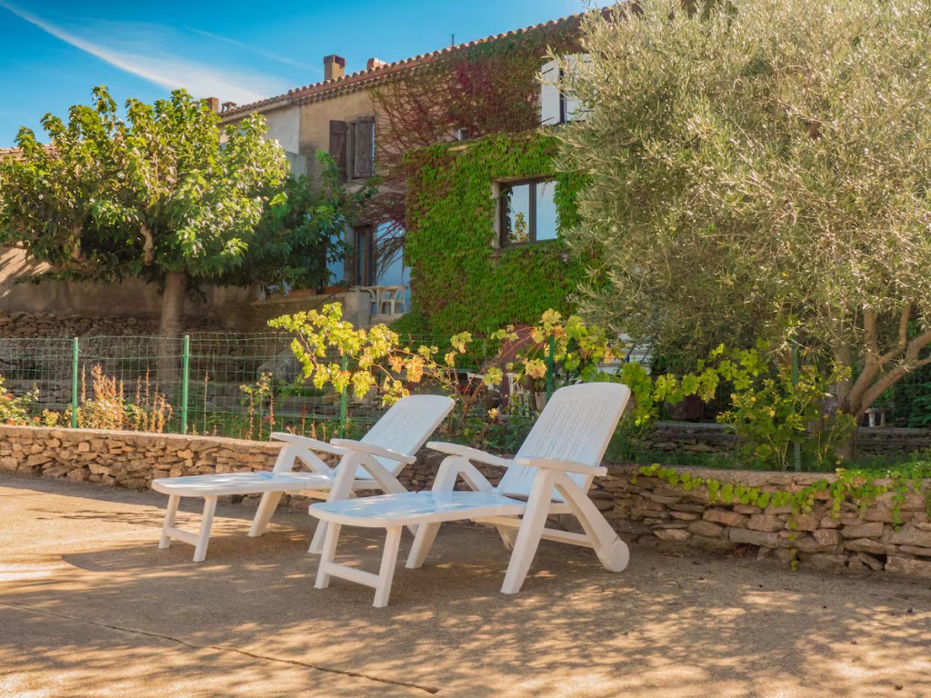 Le gîte bénéficie d’une terrasse privative orientée vers la piscine, idéale pour les repas en plein air et les moments de repos.
